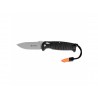 Za wygodne operowanie nożem w głównej mierze odpowiada rękojeść. Ganzo G7412-BK-WS ma profilowane okładziny z tworzywa G-10 mocowane do stalowych wkładek szkieletu śrubami torx. Szorstka tekstura tworzywa oraz ergonomiczny profil rękojeści, sprawiają, że nóż pewnie i wygodnie leży również w mokrej lub zmarzniętej dłoni. Wygodne przenoszenie noża w kieszeni, na pasku lub przy plecaku zapewnia sprężysty stalowy klips (tip up) z opcją przełożenia na lewą stronę. Outdoorowy charakter noża podkreśla smyczka z paracordu wzbogacona gwizdkiem sygnalizacyjnym o dużej głośności.