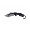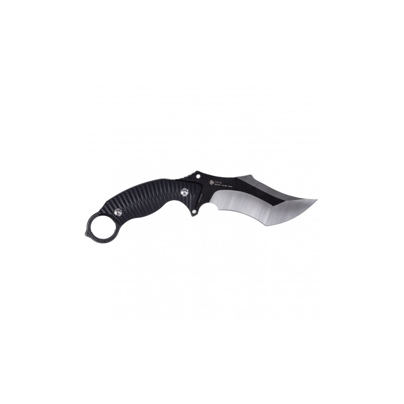 Tylny odcinek grzbietu podniesiono i wykonano na nim poprzeczne frezy pozwalające stabilnie oprzeć palec podczas pracy. W jelcu oraz grzbietowej części klingi wykonano otwory, umożliwiające wplecenie linki zabezpieczającej. Nóże o takiej budowie są wytrzymałe na uszkodzenia i nie boją się ciężkiej pracy, dlatego są powszechnie używane przez żołnierzy, pasjonatów militariów, survivalu i bushcraftu. Głownia ma dwubarwne wykończenie (black stonewash i srebrna satyna), które efektowne podkreśla drapieżny charakter noża.