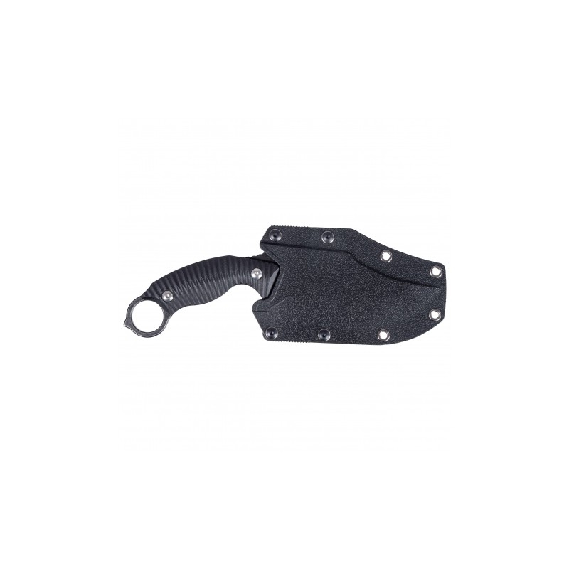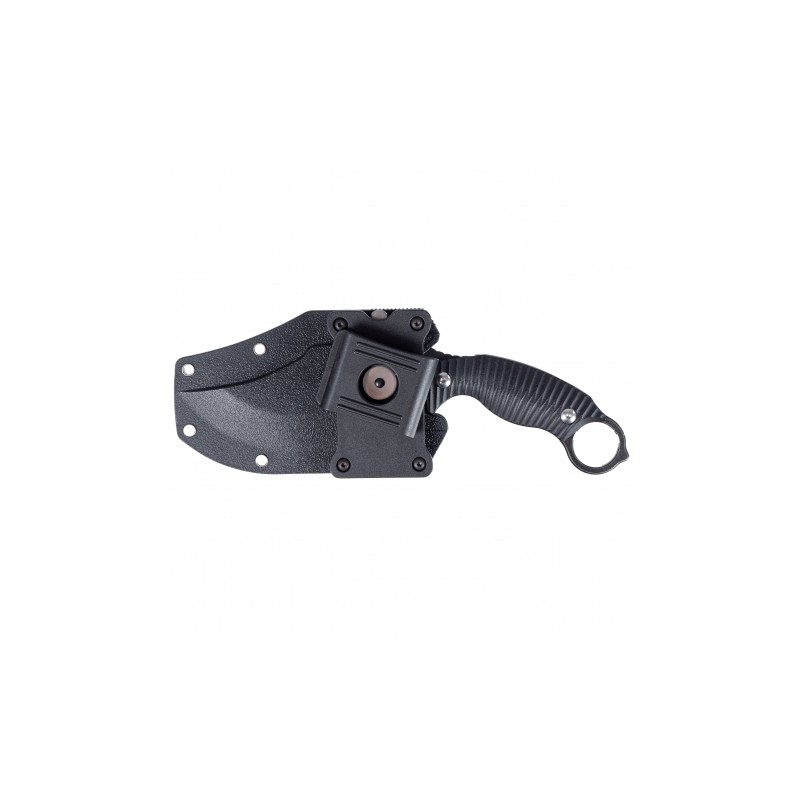 Za komfort operowania nożem odpowiada profilowana rękojeść, którą tworzą okładziny z frezowanego laminatu G-10. Charakterystyczne żebrowanie zapewnia wysoką przyczepność i stabilność chwytu. Rękojeść noża zakończona jest stalowym pierścieniem, umożliwiającym błyskawiczną zmianę chwytu, a także wykorzystywanie go w roli pobijaka lub awaryjnego zbijaka do szyb.