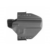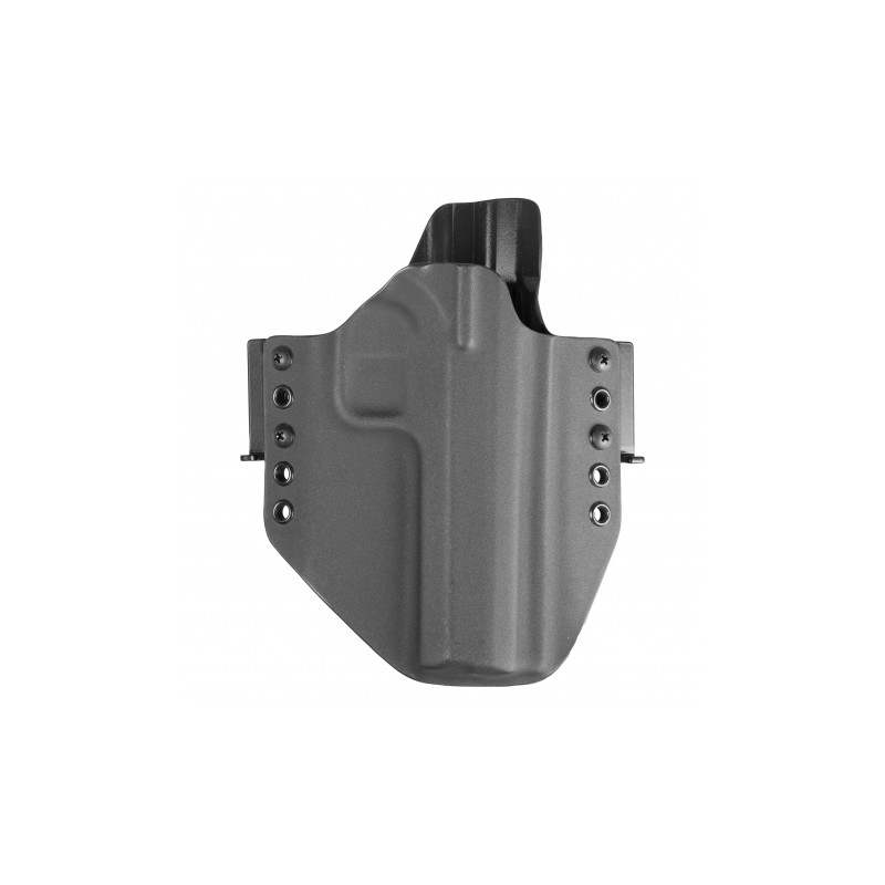 Omawiany model charakteryzuje się konstrukcją typu OWB (Over Waist Band) przeznaczoną do noszenia na zewnętrznej stronie pasa. Kabura tego typu gwarantuje wysoki komfort przenoszenia oraz możliwość szybkiego dobycia. W przypadku chęci wykorzystania w roli kabury EDC konstrukcja skutecznie dociska broń do naszego ciała, pozwalając na dyskretne przenoszenie jej pod obszerną koszulą, marynarką lub kurtką. Kabura OWB doskonale sprawdzi się również w taktycznych lub sportowych konfiguracjach pasa strzeleckiego - skorzystamy z niej zatem zarówno na strzelnicy, jak i w codziennym użytkowaniu. Zwielokrotnione porty montażu szlufek pozwolą nam na ustalenie pionowej pozycji kabury.