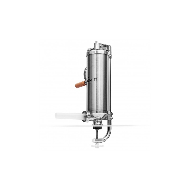 Nadziewarka pionowa Browin 2,5 kg to praktyczne urządzenie, niezastąpione podczas domowego wyrobu kiełbas, wędlin oraz potraw z podrobów. Z jej pomocą umieścisz farsz w osłonie wędliniarskiej w sposób szybki i higieniczny.