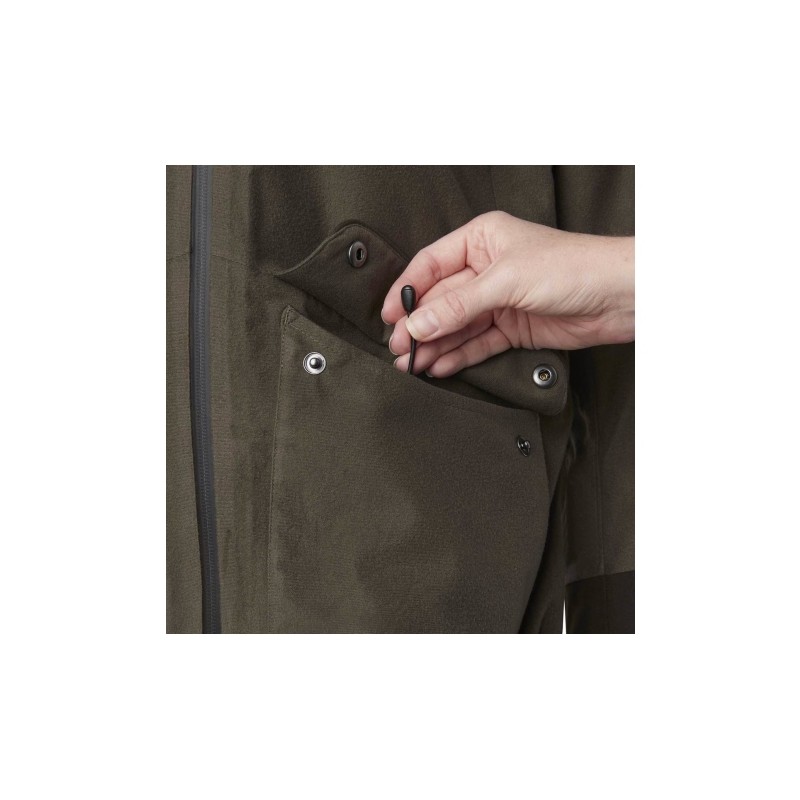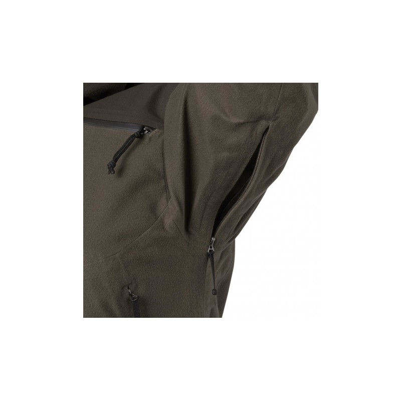 Aby zapewnić pełną kontrolę nad perspirowaną przez ciało wilgocią, producent umieścił na bokach suwaki wentylacyjne, pozwalające na odprowadzenie w podczas wysokiej aktywności. W przedniej części kurtki znajdują się dwie obszerne kieszenie przeznaczone do przenoszenia amunicji lub drobnych akcesoriów. Kurtka ma pojemny kaptur z możliwością dopasowania do głowy, wzmocnienia na ramionach i łokciach oraz dwukierunkowy zamek kryty wiatroszczelną patką.