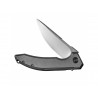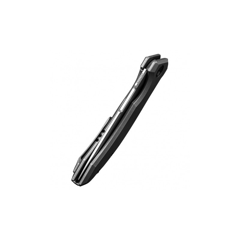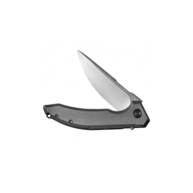 Klingę WE Quixotic wykuto ze stali CPM-20CV, zapewniającej znakomitą trwałość i odporność na korozję. Wszechstronną głownię typu Drop Point, zahartowaną do 59-61 HRC, otwieraną za pomocą flippera, wykończono metodą Bead Blast. Rękojeść wykonano z tytanu. Całość blokuje sprawdzony mechanizm Frame Lock.