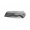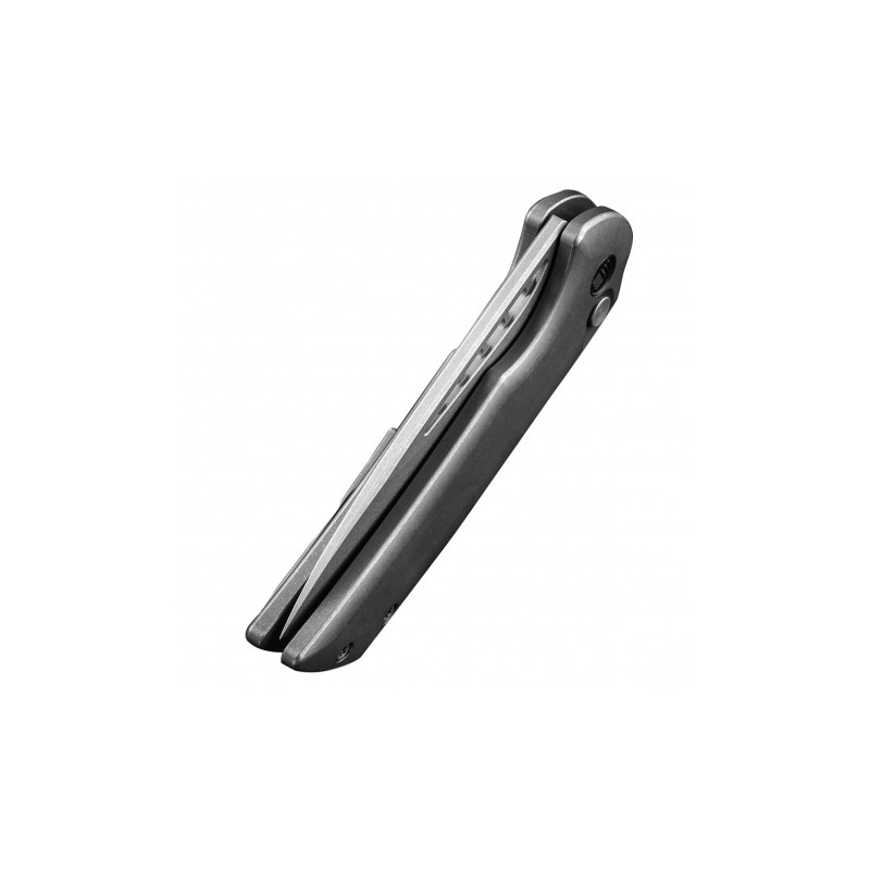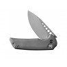 Klingę foldera wykuto ze stali CPM-20CV, zapewniającej znakomitą trwałość i odporność na korozję. Głownię typu Drop Point, zahartowaną do 59-61 HRC, otwieraną za pomocą flippera, wykończono metodą Stonewash. Rękojeść wykonano z tytanu. Całość blokuje sprawdzony mechanizm Button Lock.