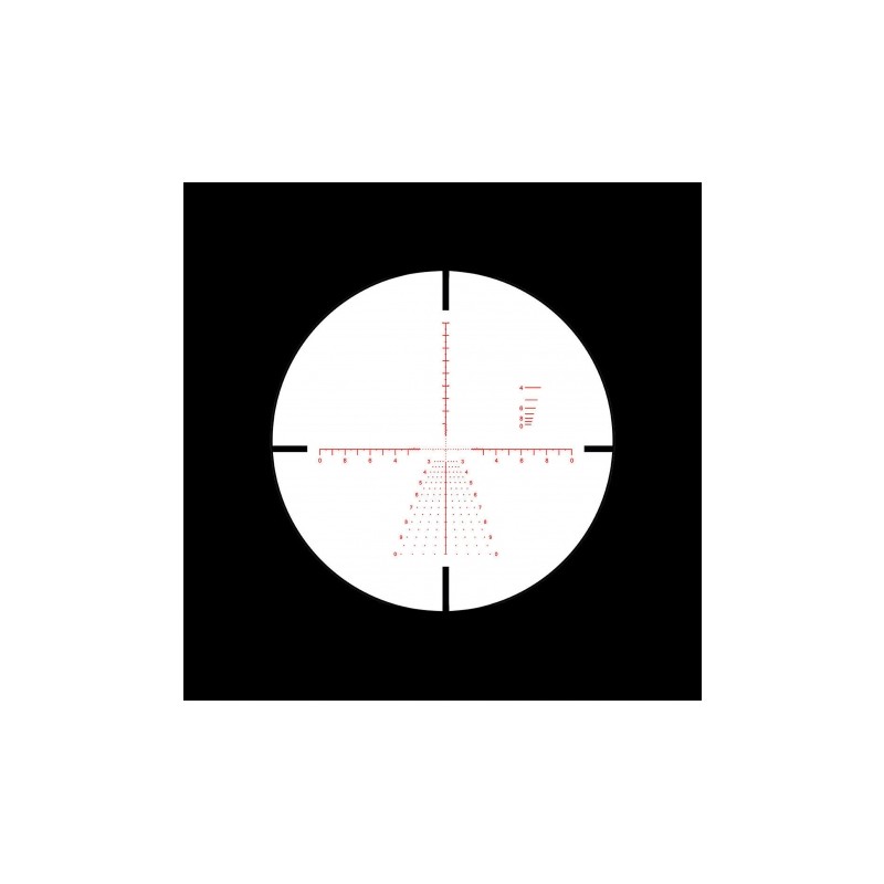 Luneta została wyposażona krzyż umieszczony w pierwszym planie optycznym, co jest optymalnym wyborem do przewidzianych dla niej zastosowań. Rozwiązanie tego typu zachowuje realne proporcje znaku celowniczego podczas zmiany powiększenia, dzięki czemu umożliwia wiarygodną ocenę odległości do celu. Ponadto w przypadku powiększeń z dołu zakresu krzyż pozostaje niewielki, nie rozpraszając nas ilością detali i pozwalając na szybkie przenoszenie pomiędzy celami. Omawiany model oferuje przeznaczony do precyzyjnych strzelań krzyż ACSS Apollo dostosowany do parametrów balistycznych amunicji 6,5 Creedmoor i .224 Valkyrie. Siatka obejmuje centralny szewron, pozwalającą na wprowadzanie korekt na opad pocisku podziałkę BDC, belki umożliwiające kompensację wpływu wiatru oraz analogowy dalmierz.
