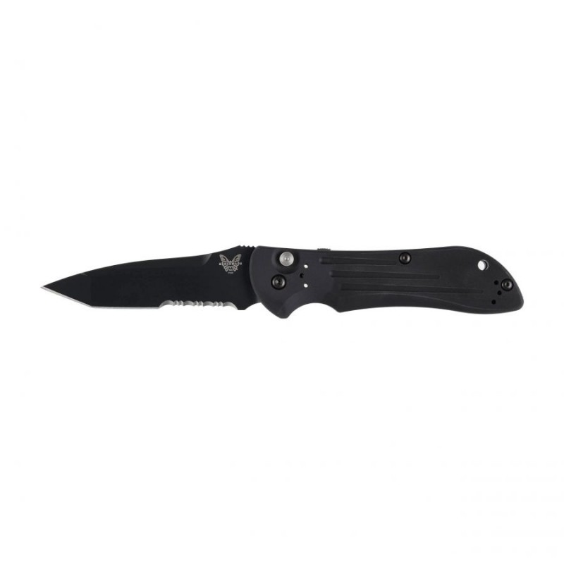 Benchmade Auto Stryker 9101SBK to automatyczny nóż taktyczny, wyposażony w częściowo ząbkowane ostrze ze stali nierdzewnej CPM 154, powiększony przycisk do rozkładania oraz masywne okładziny z anodowanego aluminium.