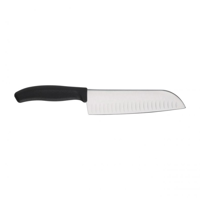 Nóż Santoku Victorinox Swiss Classic to to wszechstronne narzędzie kuchenne o ostrzu 17 cm do krojenia mięsa, ryb i warzyw.