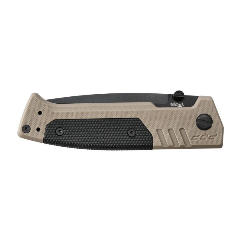 Folder Walther PDP Spearpoint posiada piaskowo-czarną rękojeść wykonaną z G10, czyli kompozytu z włókna szklanego i syntetycznej żywicy oraz z dodatkowymi nakładkami z tworzywa FRN. Okładziny mają gładkie krawędzie, zapewniając komfortowy chwyt nawet podczas dłuższej pracy.