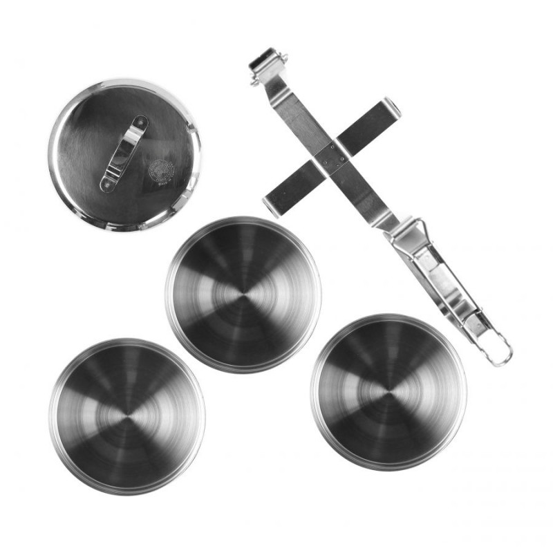 Menażka Food Carrier składa się z trzech garnuszków o identycznych rozmiarach oraz pokrywki. Wszystko wykonane z wysokiej klasy stali nierdzewnej 304, wytrzymałej i odpornej na korozję. Garnuszki są połączone specjalnym uchwytem, który zapewnia zestawi stabilność i ułatwia jego transport.