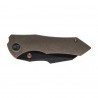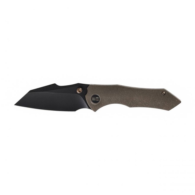 Klingę WE High-Fin wykuto ze stali CPM-20CV, zapewniającej znakomitą trwałość i odporność na korozję. Głownię typu Reverse Tanto, zahartowaną do 58-60 HRC, otwieraną za pomocą kołka pod kciuk, wykończono metodą Black Stonewash. Rękojeść wykonano z tytanu. Całość blokuje sprawdzony mechanizm Frame Lock.