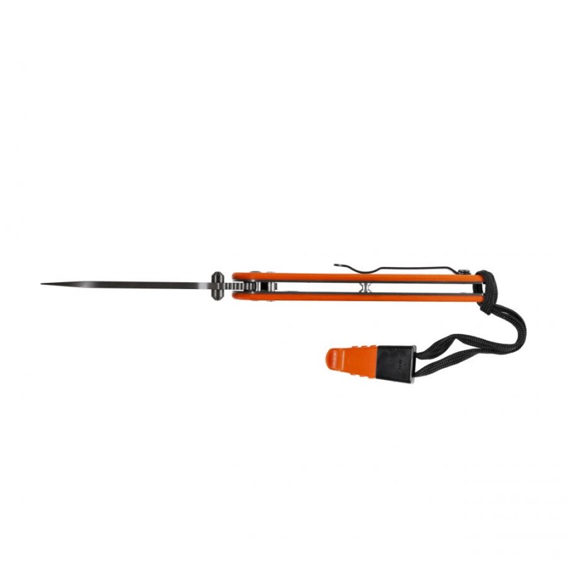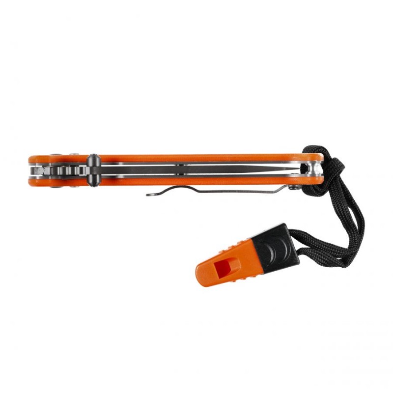 Ganzo G7413-OR-WS z gwizdkiem to poręczny nóż składany, w którym zastosowano głownię ze stali nierdzewnej 440C, sprawdzoną blokadą G-lock, obustronny kołek umożliwiający błyskawiczne rozłożenie ostrza jedną ręką oraz smyczkę z gwizdkiem sygnalizacyjnym.