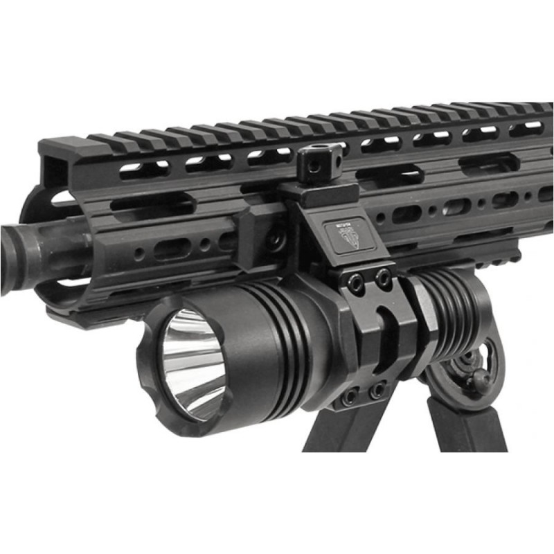 Montaż wykonano z lekkiego i trwałego zarazem anodowanego aluminium o czarnym matowym wykończeniu. Latarka mocowana jest pod kątem 45°, dzięki czemu nie odstaje od broni i zachowuje zwarty profil. Konstrukcja montażu pozwala na stosowanie współczesnych technik chwytu broni (np. c-clamp) oraz wykorzystywanie różnego rodzaju chwytów wertykalnych i kątowych.