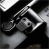 Zwiększona powierzchnia przycisku wraz z teksturowaniem sprawiają, że jest on zdecydowanie lepiej wyczuwalny i łatwiejszy w odnalezieniu w rękawicach. Zastosowanie aluminium gwarantuje niezwykle wysoką trwałość, jednocześnie nie zwiększając zauważalnie masy na tle oryginalnego przycisku. Instalacja przycisku wymaga użycia jedynie klucza imbusowego, a wszechstronna konstrukcja będzie kompatybilna z większością standardowych komór spustowych karabinków AR.
