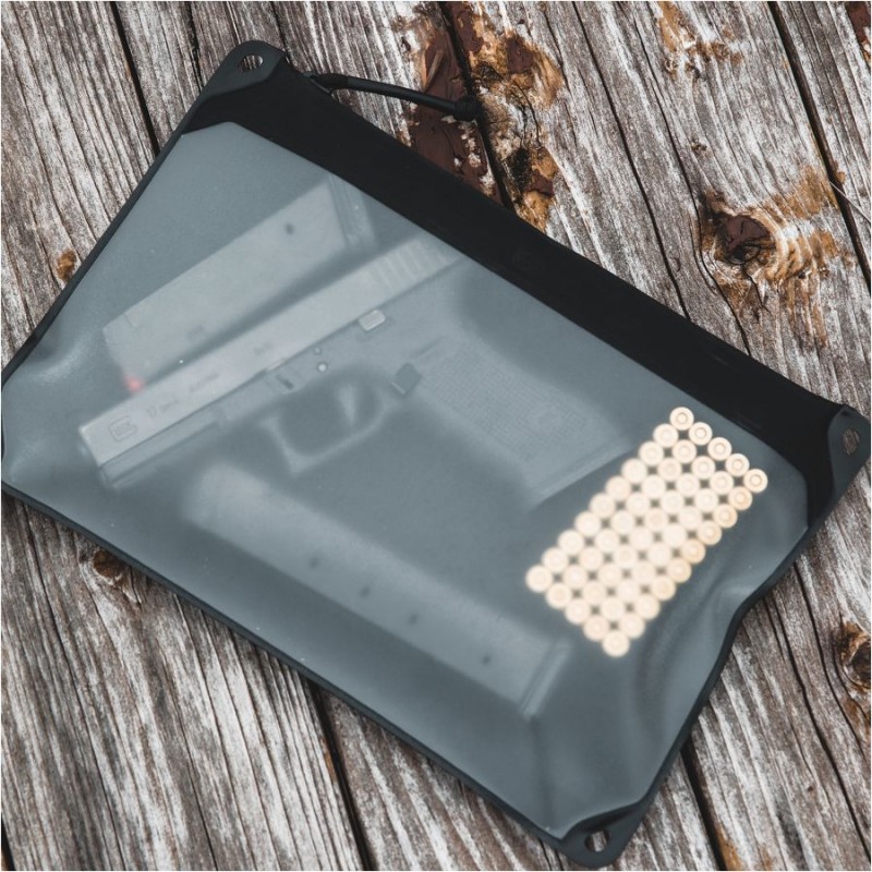 Wykorzystany w konstrukcji materiał DAKA to opatentowany laminat łączący w sobie niezwykle wysoką elastyczność z możliwością utrzymania odpowiedniej trwałości. Dzięki temu możliwe jest wykorzystanie go do tworzenia chociażby dopasowujących się do kształtu zawartości zasobników. Co więcej, materiał jest na tyle wytrzymały, aby poradzić sobie z kontaktem z umieszczanymi wewnątrz narzędziami lub amunicją. Półprzezroczysty front zasobnika gwarantuje natomiast łatwość inspekcji zawartości.