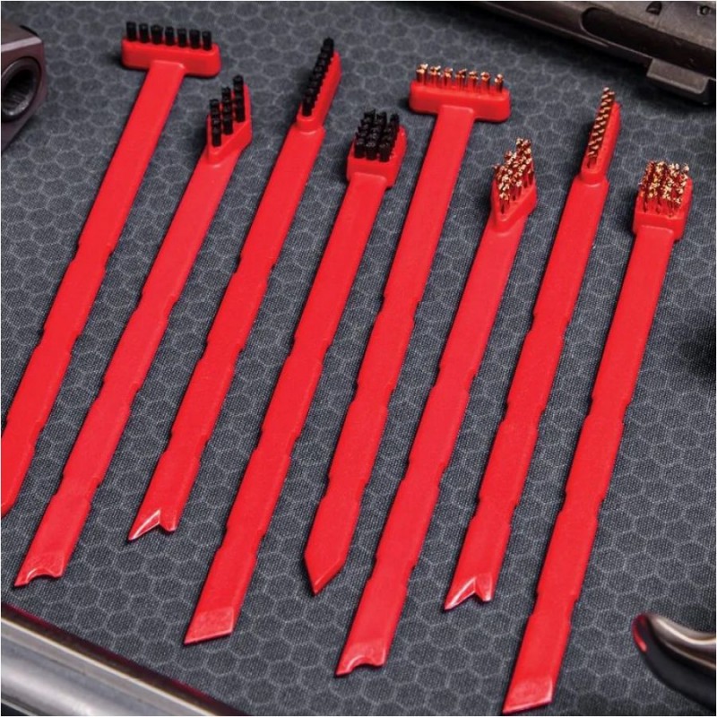Stworzony przez Real Avid zestaw szczotek i skrobaków, przeznaczony do usuwania najbardziej uciążliwych zanieczyszczeń. Dwustronna konstrukcja narzędzi sprawia, że zajmują one możliwie mało miejsca, gwarantując przy okazji rozszerzoną funkcjonalność. Wykorzystanie zarówno nylonowych, jak i miedzianych szczotek pozwoli nam na dostosowanie intensywności szorowania. Polimerowe skrobaki umożliwią natomiast precyzyjne usunięcie stawiających opór zanieczyszczeń, jednocześnie nie stanowiąc zagrożenia dla konstrukcji broni.