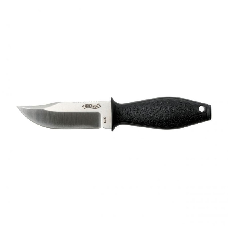 Walther BSK to solidny nóż o zróżnicowanym przeznaczeniu stworzony z myślą o wykorzystaniu w roli neck knife lub kompaktowego modelu mocowanego na oporządzeniu.Nóż wykonano z popularnej stali nierdzewnej 440C hartowanej w zakresie 57-59 HRC. Dzięki zwiększonej zawartości węgla stal jest odporna na zużycie, długo zachowuje ostrość roboczą, a także stosunkowo szybko i łatwo się ostrzy, co jest istotne w przypadku noża do pracy w terenie.