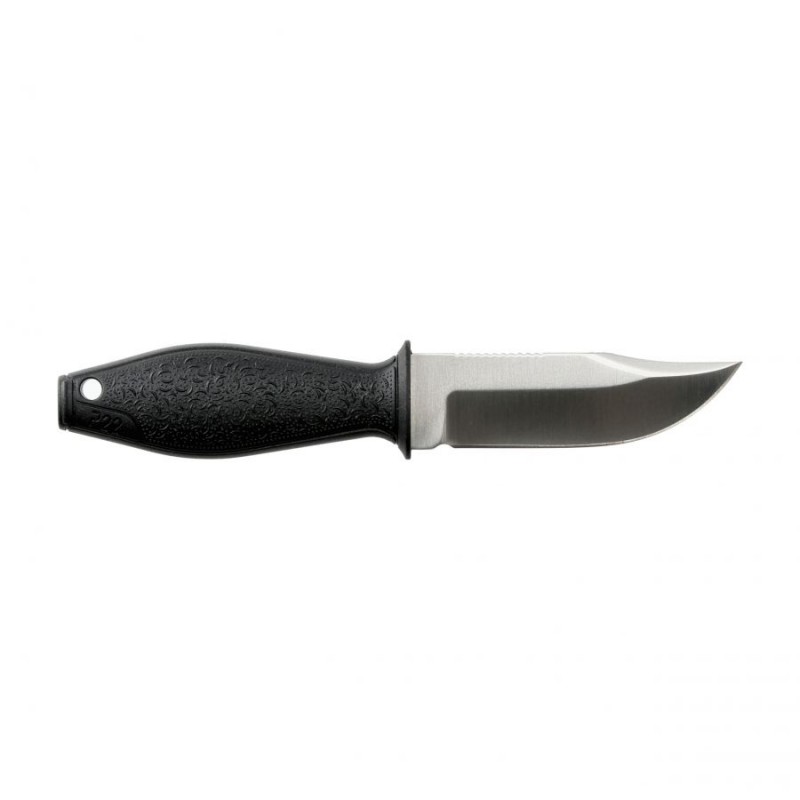 Geometryczny profil klingi to zmodernizowane tanto. Dzięki zastosowaniu mocnego sztychu oraz działającemu jak gilotyna zakrzywieniu krawędzi tnącej, nóż ma wspaniałą zdolność do penetracji i równie dobrze radzi sobie z cięciem. Rękojeść noża wykonano z twardego polimeru i dodatkowo pokryto gumą zwiększającą przyczepność. Chwyt ma profilowany kształt rozszerzający się u nasady głowni. W ten sposób tworzy się naturalny jelec, zapobiegający zsunięciu się dłoni na ostrze.