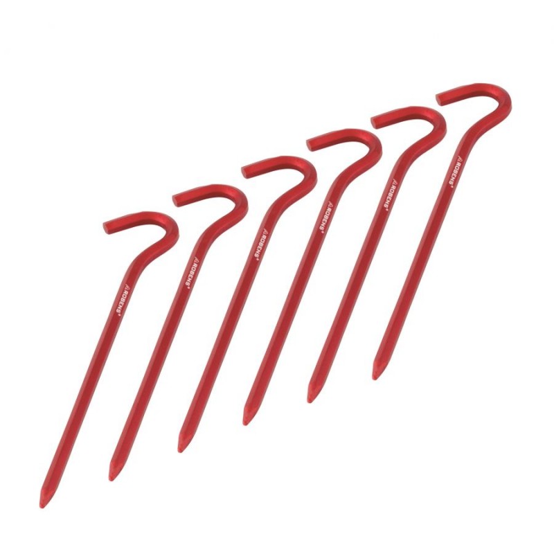 Aluminiowe szpilki o heksagonalnym profilu pozwalają na stabilizację namiotu oraz zwiększają jego odporność na silne podmuchy wiatru, dzięki czemu namiot może bezpiecznie utrzymać się w miejscu.