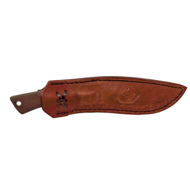 Producent zadbał również o estetyczną pochwę z grubej bydlęcej skóry, komfortową i dobrze zabezpieczającą nóż.