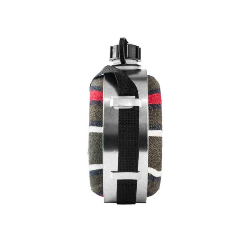 Manierka o pojemności 1,75 litra niemieckiej marki MFH. Wykonana z polimeru, na zewnątrz pokryta materiałem (pokrowiec termoizolacyjny) i opaską z aluminium. Posiada polimerową zakrętkę umocowaną tak, żeby nie było możliwości jej zgubić. Pasek o regulowanej długości umożliwia przewieszenie manierki przez ramię, bądź przytroczenie do plecaka. Manierka jest bardzo lekka. Idealna alternatywa na wyprawy survivalowe i nie tylko.