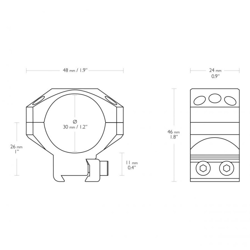 Dwuczęściowy średni montaż Hawke Tactical przeznaczony do lunet o średnicy tubusu wynoszącej 30 mm. Montaż pasuję na szynę Dovetail, na której mocuje się go za pomocą dwóch śrub (każdy z elementów montażu).