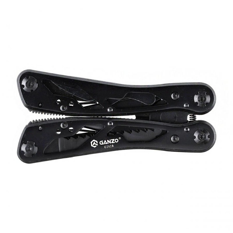 Na pokładzie multitoola Ganzo G202-B zaimplementowano aż 25 przydatnych narzędzi, dzięki czemu mamy pod ręką praktyczny niezbędnik, który pozwala na przeprowadzenie wielu drobnych napraw. Dzięki rozmieszczeniu narzędzi na zewnętrznych stronach rękojeści, mamy dostęp do wszystkich funkcji multitoola bez potrzeby rozkładania go. Głównym narzędziem Ganzo G202-B są sprężynujące kombinerki, które zapewniają wygodną i sprawną pracę.