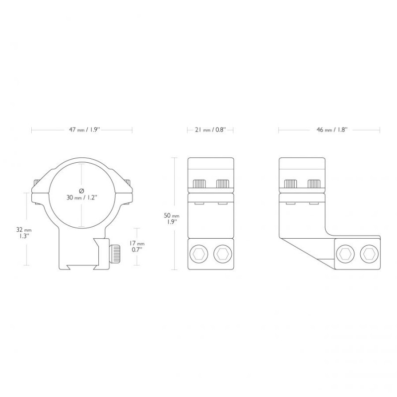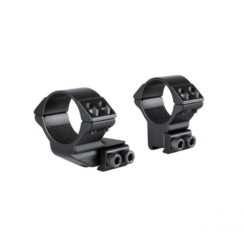 Pierścienie montażowe mocuje się czterema śrubami i dokręca przy użyciu dołączonego klucza. Wytrzymałość na odrzut nawet silnych wiatrówek gwarantują wzmocnione (podwójne) śruby mocujące. Wewnętrzne ściany pierścieni okryto taśmą ochronną, która zapobiega porysowaniu tubusa lunety.