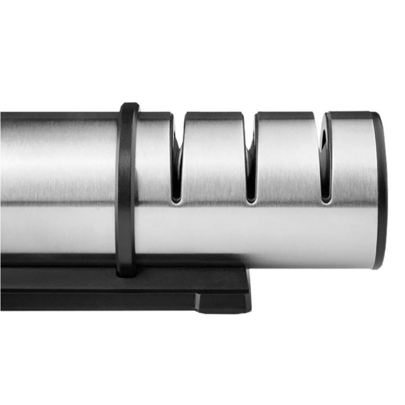 Dwuetapowy system ostrzenia pozwala na naostrzenie każdego rodzaju noży. Początkowe zgrubne ostrzenie przygotowuje krawędź i nadaje odpowiedni kąt. Podczas ostrzenia finalnego, wygładzamy ostrze noża, co zapewnia idealny efekt końcowy.