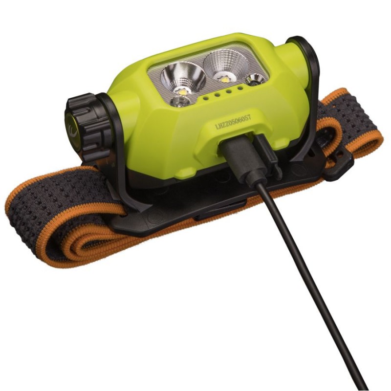 Głowica latarki została wyposażona w możliwość regulacji kąta nachylenia w zakresie 60 stopni. W połączeniu z wyjątkowo szerokim kątem oświetlenia pozwoli nam to na wygodną pracę niezależnie od pozycji w jakiej się znajdujemy. Konstrukcja korpusu latarki została oparta o niezwykle wytrzymały, a przy tym bardzo lekki poliwęglan. Gwarantuje nam to wysoką odporność na upadki oraz uderzenia, jak i komfortowo niską masę pozwalającą na wygodne korzystanie z latarki przez wiele godzin. Pomaga w tym również nowoczesna, wyposażona w otwory wentylacyjne opaska, która gwarantuje skuteczne odprowadzanie wilgoci podczas cieplejszych dni.
