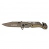 Wykonanie rękojeści z aluminium w piaskowym kolorze nadaje nożowi wytrzymałości i agresywnego designu. W okładzinach wykonano otwory dla odciążenia i przesunięcia środka ciężkości w stronę czubka ostrza. Nóż składany Kandar N169 dobrze trzyma się w dłoni. Specjalnie wyprofilowana rękojeść stabilizuje chwyt i zabezpiecza przed ześlizgnięciem się ręki na ostrze.