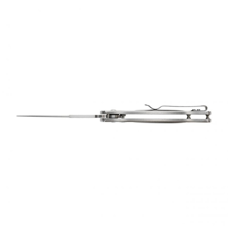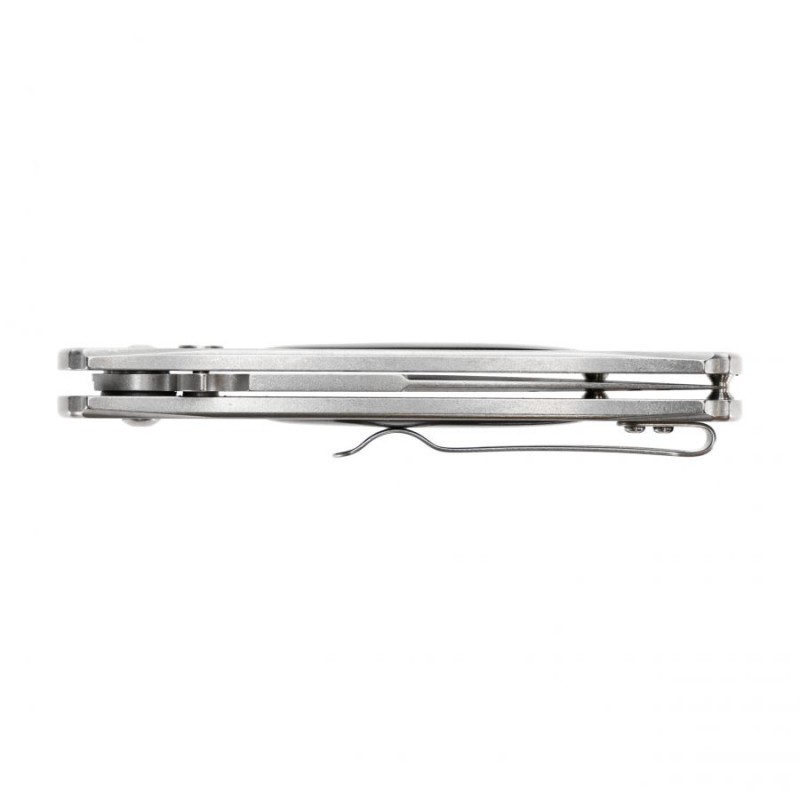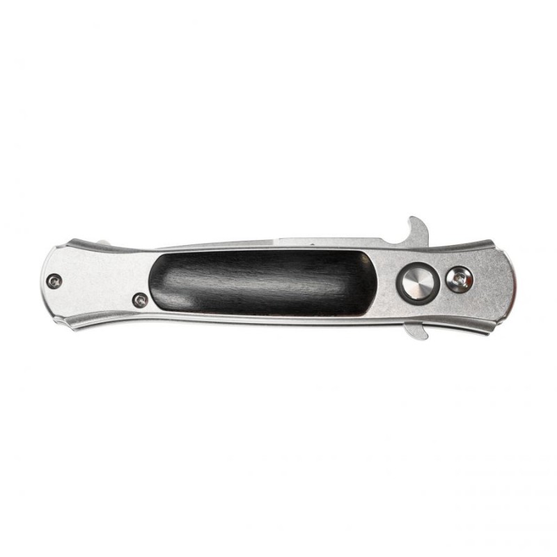 Ergonomiczna rękojeść wykonana z aluminium posiada wstawki z precyzyjnie wykończonego drewna. Antypoślizgowa faktura rękojeści zapewnia bezpieczny chwyt w każdych warunkach. Umieszczony na rekojeści klips pozwala na pewne i dyskretne przenoszenie noża. Do noża dołączone jest eleganckie opakowanie.