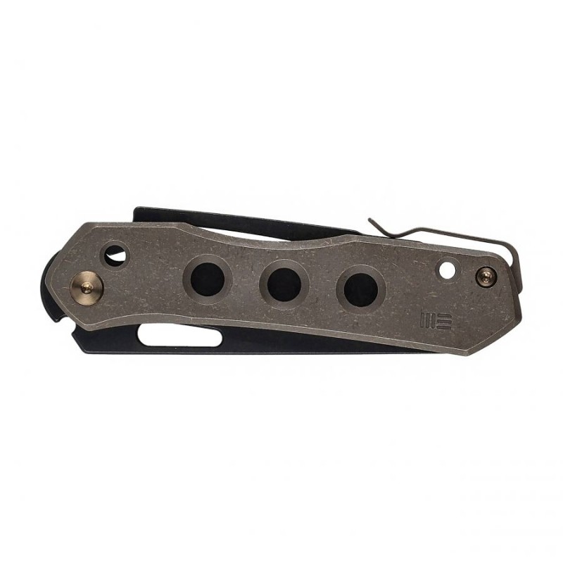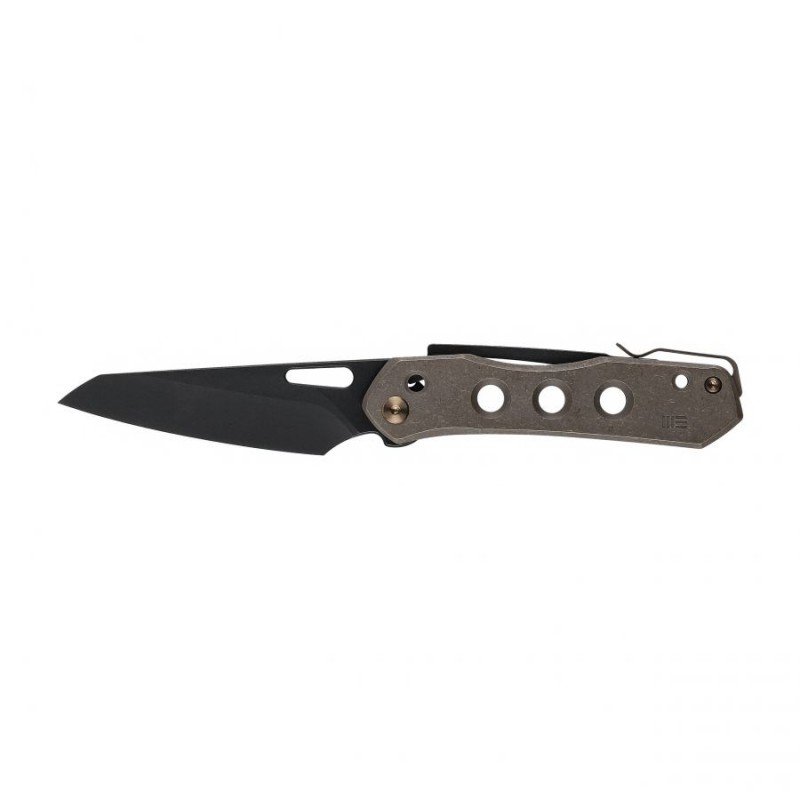 Głownię WE Vision R wykuto ze stali CPM-20CV, doskonale trzymającej krawędź i odpornej na korozję. Klingę typu Reverse Tanto, zahartowaną do 59-61 HRC i wykończoną metodą Black Stonewash, otwiera się za pomocą otworu w głowni lub grawitacyjnie. Rękojeść wykonano z brązowego tytanu. Całość blokuje nowatorski mechanizm Superlock.