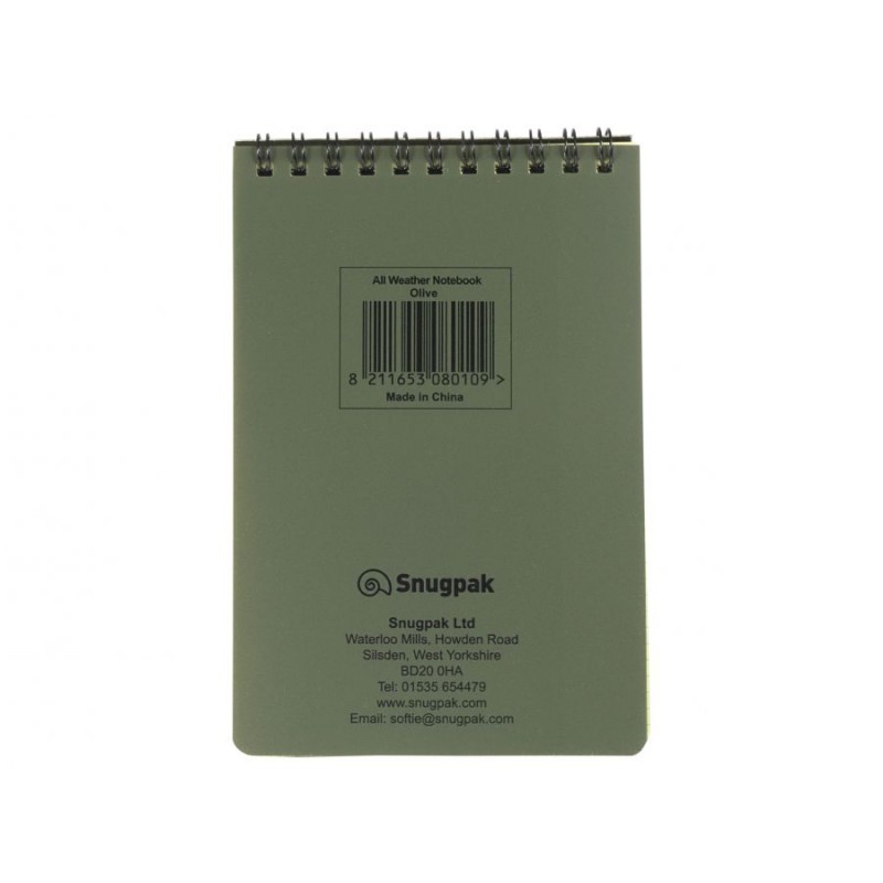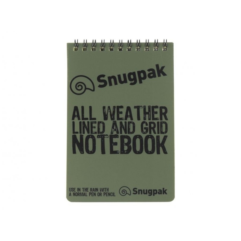 Notes wodoodporny Snugpak eliminuje częsty problem każdego pasjonata outdooru, związany z nieczytelnymi notatkami, a także mokrym, lub rozdartym papierem, niepozwalającym na zapis informacji. Impregnowany papier notatnika Snugpak umożliwia zapisanie informacji podczas ulewy, śnieżycy, a także po zanurzeniu w wodzie.