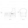 Celownik ma znak celowniczy w formie czerwonej kropki o optymalnej wielkości 3 MOA z 8-stopniową regulacją jasności. Celownik zasilany jest za pomocą popularnej baterii CR2032. Zastosowanie czujnika ruchu sprawia, że celownik wyłącza się automatycznie w razie bezczynności trwającej dłużej niż 5 minut. Dzięki takiej funkcjonalności czas pracy na jednej baterii jest znacząco wydłużony i mamy pewność, że bateria nie ulegnie niekontrolowanemu wyczerpaniu. Do włączania oraz zmiany jasności służą dwa boczne przyciski oznaczone symbolami plus i minus. Bateria montowana jest z boku kolimatora na wysuwanej tacce blokowanej śrubami, co zapewnia łatwość i wygodę jej wymiany.