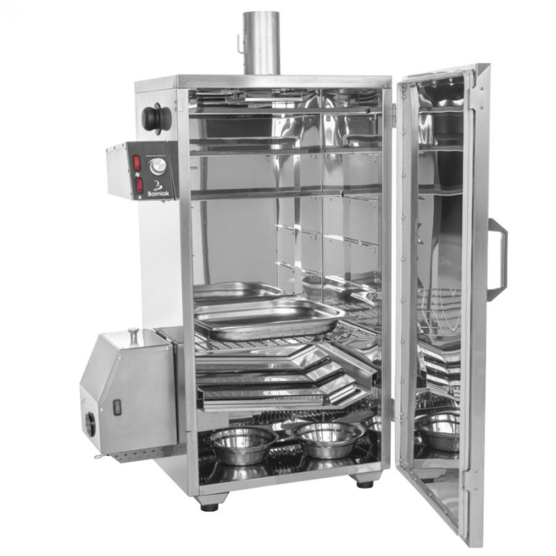 Smoker Borniak BBQ INOX Timer BBDS-70 to nowoczesna wędzarnia, która doskonale nadaje się do domowego wędzenia i z powodzeniem może być wykorzystywana w gastronomii oraz agroturystyce, czyli wszędzie tam, gdzie zależy nam na skróconym czasu wędzenia i podpiekania wyrobów.