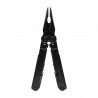 Szczęki dzielą się na trzy sekcje o różnym przeznaczeniu - osadzony w głębi przecinak do drutu, umieszczone centralnie kombinerki do śrub oraz przeznaczone do precyzyjnych prac zakończenie z zazębiającym się teksturowaniem. Dwa ostrza - gładkie i ząbkowane, ukryte w lewym ramieniu toola, pozwalają na szybki dostęp jedną ręką, bez konieczności rozkładania całej konstrukcji. Dzięki zastosowaniu klapek osłaniających dodatkowe narzędzia ukryte w ramionach, chwyt pozostaje niezwykle wygodny, co docenimy podczas cięższych prac.