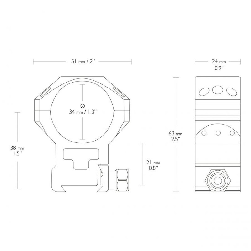 Dwuczęściowy wysoki montaż Hawke Tactical przeznaczony do lunet o średnicy tubusu wynoszącej 34 mm. Montaż pasuję na szynę Weaver, na której mocuje się go za pomocą dwóch śrub (każdy z elementów montażu).