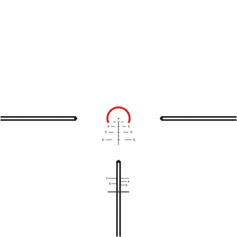 - Osadzony w drugim planie krzyż z dwukolorowym podświetleniem o dostosowanej do kalibru 5,56x45 mm siatce