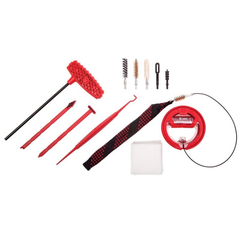 Zestaw do czyszczenia broni Real Avid Gun Boss Multi-Kit oferuje użytkownikowi:Kompleksowy przegląd narzędzi jaki oferuje zestaw do czyszczenia broni Real Avid Gun Boss Pro pozwoli nam na przeprowadzenie pełnej, skutecznej konserwacji naszego pistoletu. Skrobaki umożliwiają nam pozbycie się najtrudniejszych zanieczyszczeń bez ryzyka uszkodzenia powierzchni. Nylonowa szczotka prostokątna zagwarantuje wydajne oczyszczenie wnętrza broni ze wstępnie usuniętego nagaru, natomiast dwie szczotki okrągłe pozwolą na skuteczne wyczyszczenie lufy. Dzięki zastosowaniu obrotowej rączki oraz szeregu przedłużek wycior pozwoli na poprawne czyszczenie broni - rotacja szczotki zapewnia nam w tym przypadku odpowiednie jej prowadzenie wzdłuż gwintu.