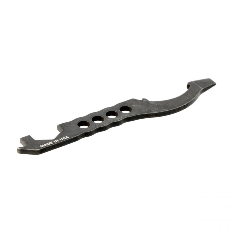 Jednoczęściową konstrukcję klucza wykonano z wytrzymałej stali i wykończono w procesie fosfatowania . Gwarantuje to nie tylko doskonałą trwałość, ale także odporność na korozję, zapewniając długotrwałe użytkowanie. Perforowana struktura chwytu natomiast odciąża klucz, jednocześnie nie wpływając negatywnie na jego wytrzymałość. Rozwiązaniem charakterystycznym dla klucza rusznikarskiego jest możliwość przechowywania go w stopce kolby B5 SOPMOD oraz Bravo. Dzięki temu masz zawsze klucz pod ręką, gdy go potrzebujesz.