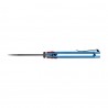 Satynowaną klingę Kizer Hyper wykuto ze stali nierdzewnej CPM-S35VN, odpornej na zużycie i korozję, długo utrzymującej ostrość roboczą i dającą się stosunkowo łatwo naostrzyć. Głownię typu Sheepfoot otwiera się za pomocą kołka pod kciuk. Aluminiowe okładziny rękojeści uformowano tak, by zapewnić użytkownikowi bezpieczeństwo i wygodę. Całość blokuje sprawdzony mechanizm button lock.