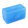 Pudełko na amunicję MTM RS-50-24 to proste i solidne etui na 50 sztuk amunicji kulowej. Wykonane z przeźroczystego, zabarwionego na niebiesko tworzywa umożliwia wygodny transport amunicji.