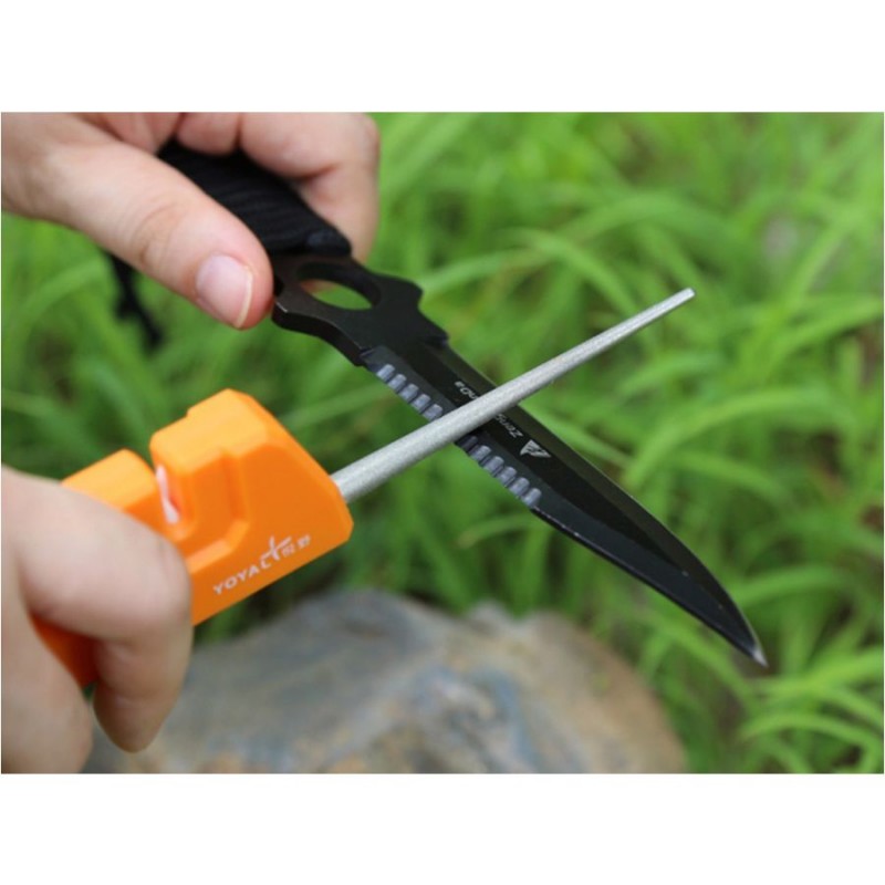 Ostrzałka umożliwia ostrzenie na 3 powierzchniach: diamentowej (pręcik), ceramicznej (ostrzałka V) oraz na spieku węglika wolframu (ostrzałka V).