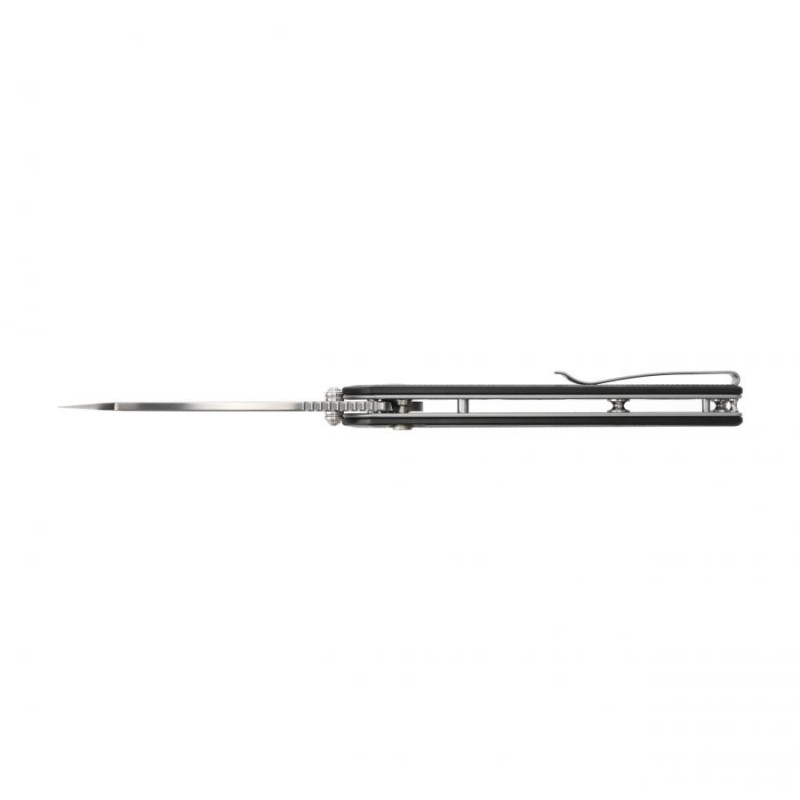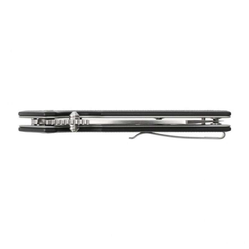 Nóż ma dwustronny klips (prawa/lewa), który umożliwia komfortowe przenoszenie noża w pozycji tip-up, zahaczonego o krawędź kieszeni spodni.
