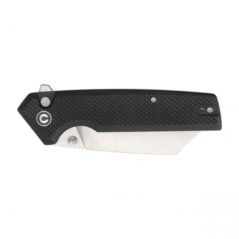 Civivi Amirite wyposażony został w czarne okładziny wykonane z G10, czyli kompozytu z włókna szklanego i syntetycznej żywicy, które przytwierdzono do stalowych linersów.