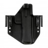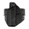 Omawiany model charakteryzuje się konstrukcją typu OWB (Over Waist Band) przeznaczoną do noszenia na zewnętrznej stronie pasa. Kabura tego typu gwarantuje wysoki komfort przenoszenia oraz możliwość szybkiego dobycia. W przypadku chęci wykorzystania w roli kabury EDC konstrukcja skutecznie dociska broń do naszego ciała, pozwalając na dyskretne przenoszenie jej pod obszerną koszulą, marynarką lub kurtką. Kabura OWB doskonale sprawdzi się również w taktycznych lub sportowych konfiguracjach pasa strzeleckiego - skorzystamy z niej zatem zarówno na strzelnicy, jak i w codziennym użytkowaniu. Zwielokrotnione porty montażu szlufek pozwolą nam na ustalenie pionowej pozycji kabury.