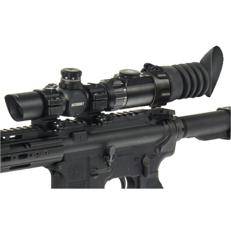 Profesjonalna guma na okular lunety znacznie pomaga w celowaniu początkującym jak i zaawansowanym strzelcom. Zrobiona z dobrej jakościowo gumy. Specjalna budowa (harmonijka) amortyzuje uderzenie w oko przy strzale. Dołączone adaptery czynią z niej uniwersalną dla większości lunet. Średnica wewnętrzna (na okular): 36 mm, 40 mm, 41,5 mm, 43 mm
