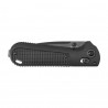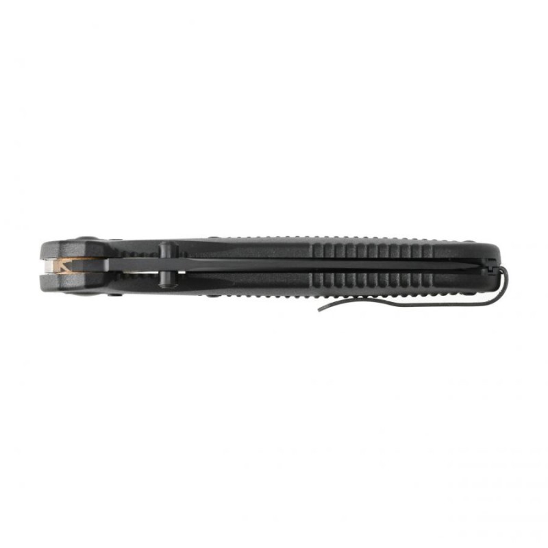 Benchmade 430BK-02 Redoubt ma profilowane okładziny z tworzywa Grivory w kolorze czarnym. Grivory to laminat szklano-epoksydowy, który cechuje się niewielką masą, wysoką wytrzymałością mechaniczną, odpornością na działanie wielu kwasów i rozpuszczalników oraz nagłe zmiany temperatur. Dzięki agresywnie teksturowanej nakładce uzyskujemy niezwykle pewny i bezpieczny chwyt noża podczas pracy. Otwór w tylnej części chwytu pozwala na mocowanie smyczy lub ozdobnego oplotu z paracordu. Aby zwiększyć niezawodność i wytrzymałość konstrukcji, w nożu zastosowano szkieletowe stalowe wkładki wzmacniające. Dyskretne przenoszenie noża w kieszeni umożliwia klips deep carry (bez możliwości przekładania).