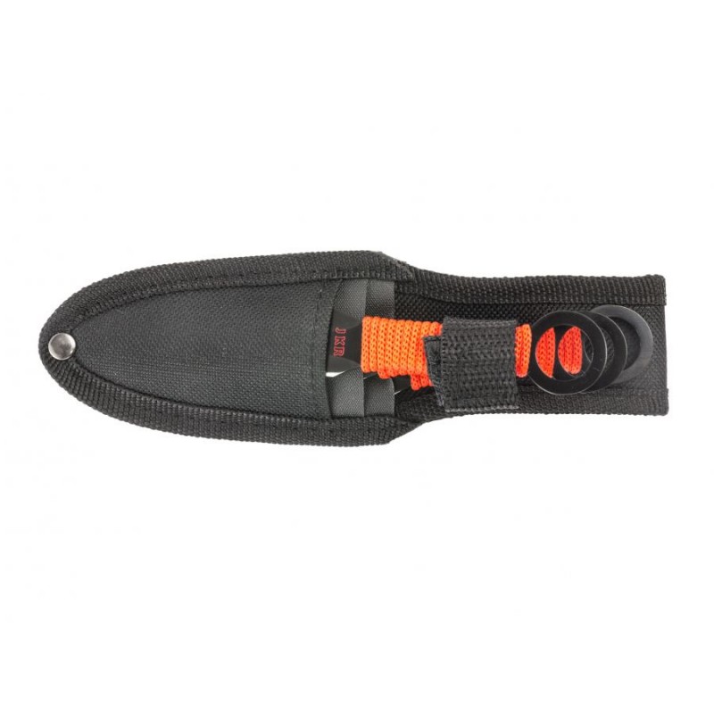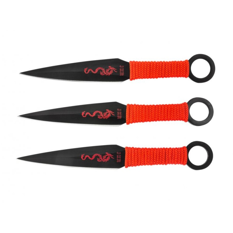 Noże do rzucania Joker, to wysokiej jakości rzutki znanej hiszpańskiej marki. Produkt został wykonany ze stali nierdzewnej oksydowanej, całość jest doskonale wyważona. Rękojeść wykonano techniką cord wrap z wytrzymałej linki nylonowej, zapewniającej dobry chwyt. W zestawie znajduje się kabura na pasek, ułatwiająca przenoszenie i dobywanie noży.