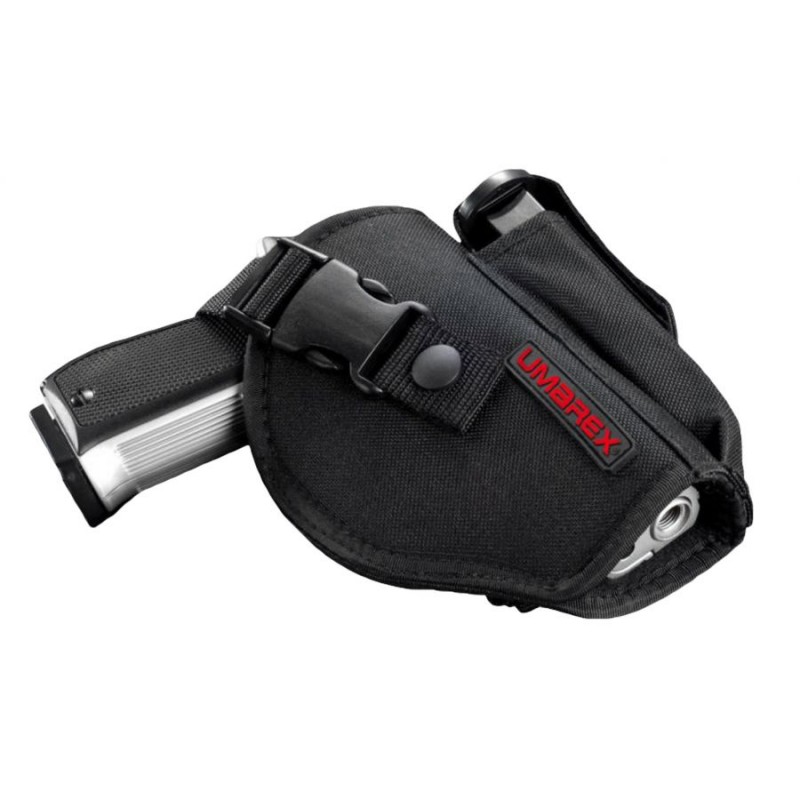 Kabura na pas Umarex na pistolet i magazynek przeznaczona jest do przenoszenia broni krótkiej o średnich rozmiarach wraz z zapasowym magazynka. Wersja dla praworęcznych.